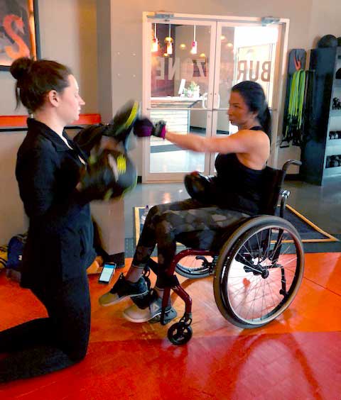 Aside from CrossFit, I also really wanted to find a workout that had more cardio because it takes a lot to get my heart rate up. I heard about a new kickboxing facility opening in my area, so I checked it out. Burn Kickboxing is my favorite workout by far! While my able-bodied peers are kicking or on the ground doing flutter kicks, I'm coming up with combinations (jab, cross, hook, hook, back, back). This high-energy and fast-paced workout is just what I was looking for. I take four one-hour classes per week and I feel amazing! I am so happy that I decided to get out of my comfort zone and try all different types of fitness.