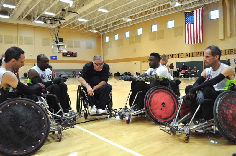 Prior to a match, speaking with players can give you a good idea of their headspace. Like any competitive sport, wheelchair rugby requires a lot of strategizing between players and coaches to make sure that everybody is on the same page.