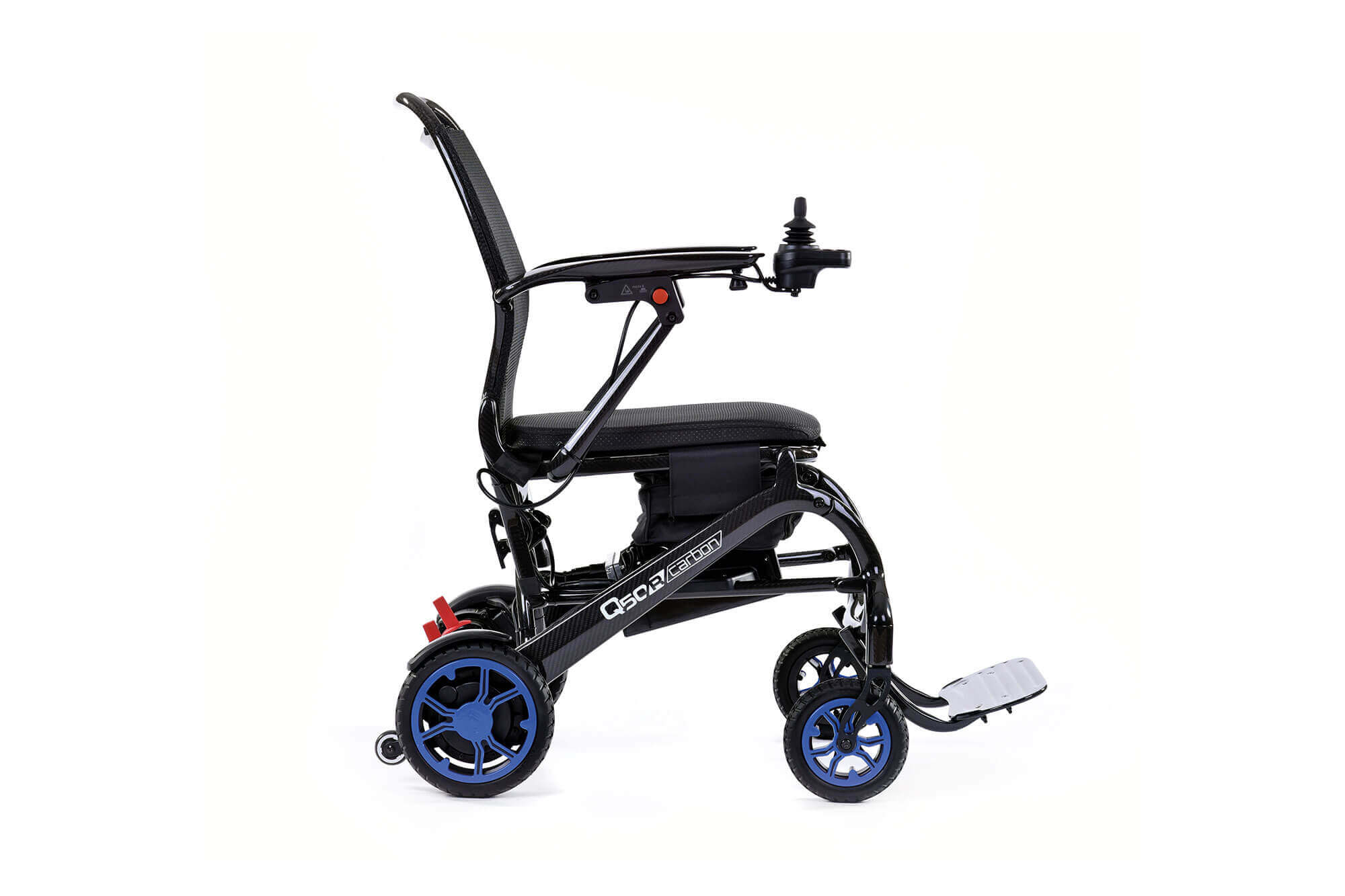 Travel lighter with QUICKIE's lightest carbon folding powerchair.