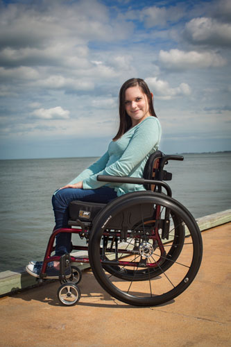 Alyssa is a 23-year-old from Colorado but now lives in a small town in Virginia. When she was just 6 years old, she and her family drove to Oklahoma from Colorado to visit their family for Thanksgiving. They never made it to their intended destination and were in a bad car accident. Alyssa suffered a complete spinal cord injury. Alyssa's favorite motto is, "The only disability in life is a bad attitude." She enjoys going out with friends, being with family, jamming out to music, being with her animals, and eating cheeseburgers!